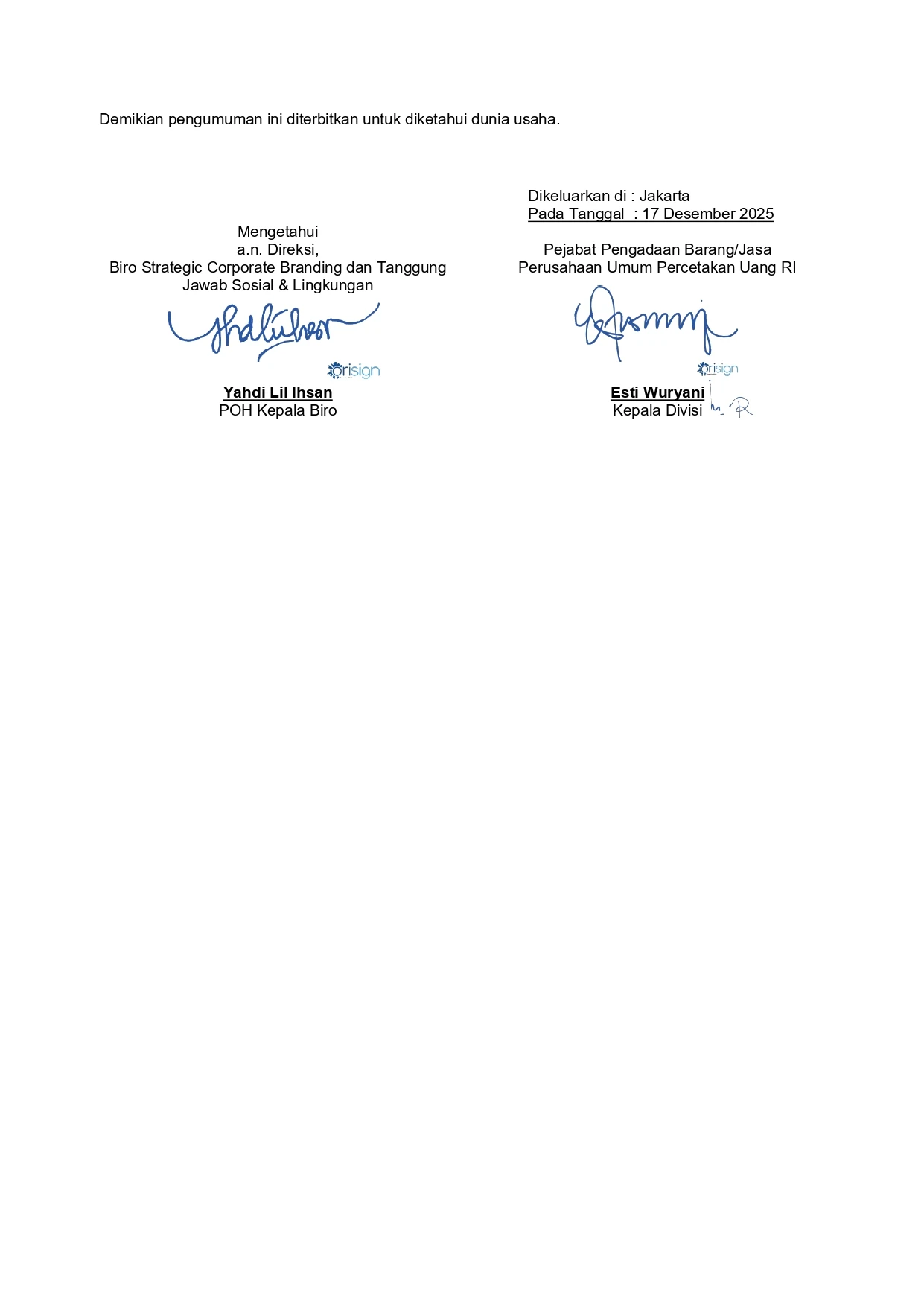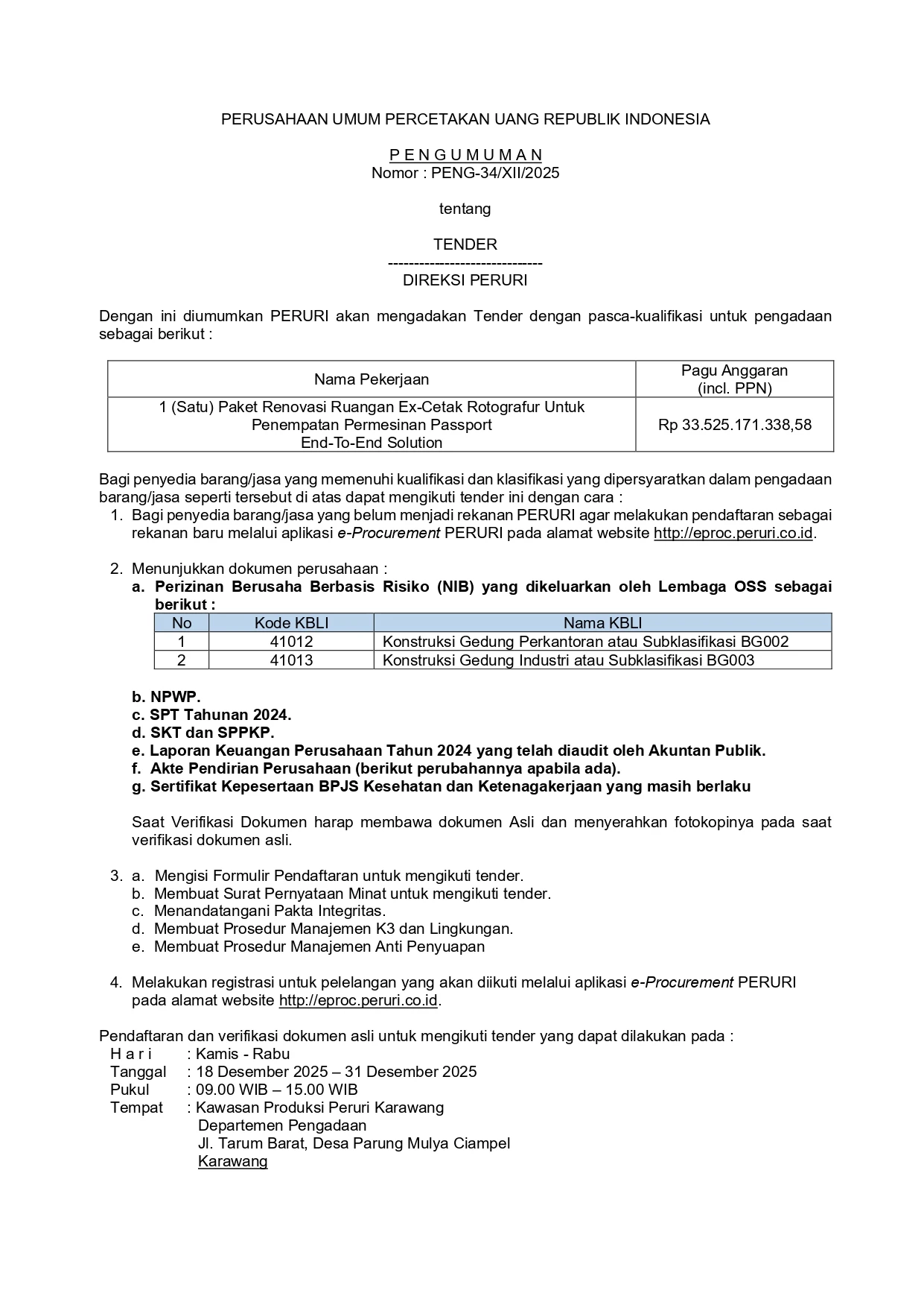 Tender 1 (Satu) Paket Renovasi Ruangan Ex-Cetak Rotografur Untuk Penempatan Permesinan Passport End-To-End Solution