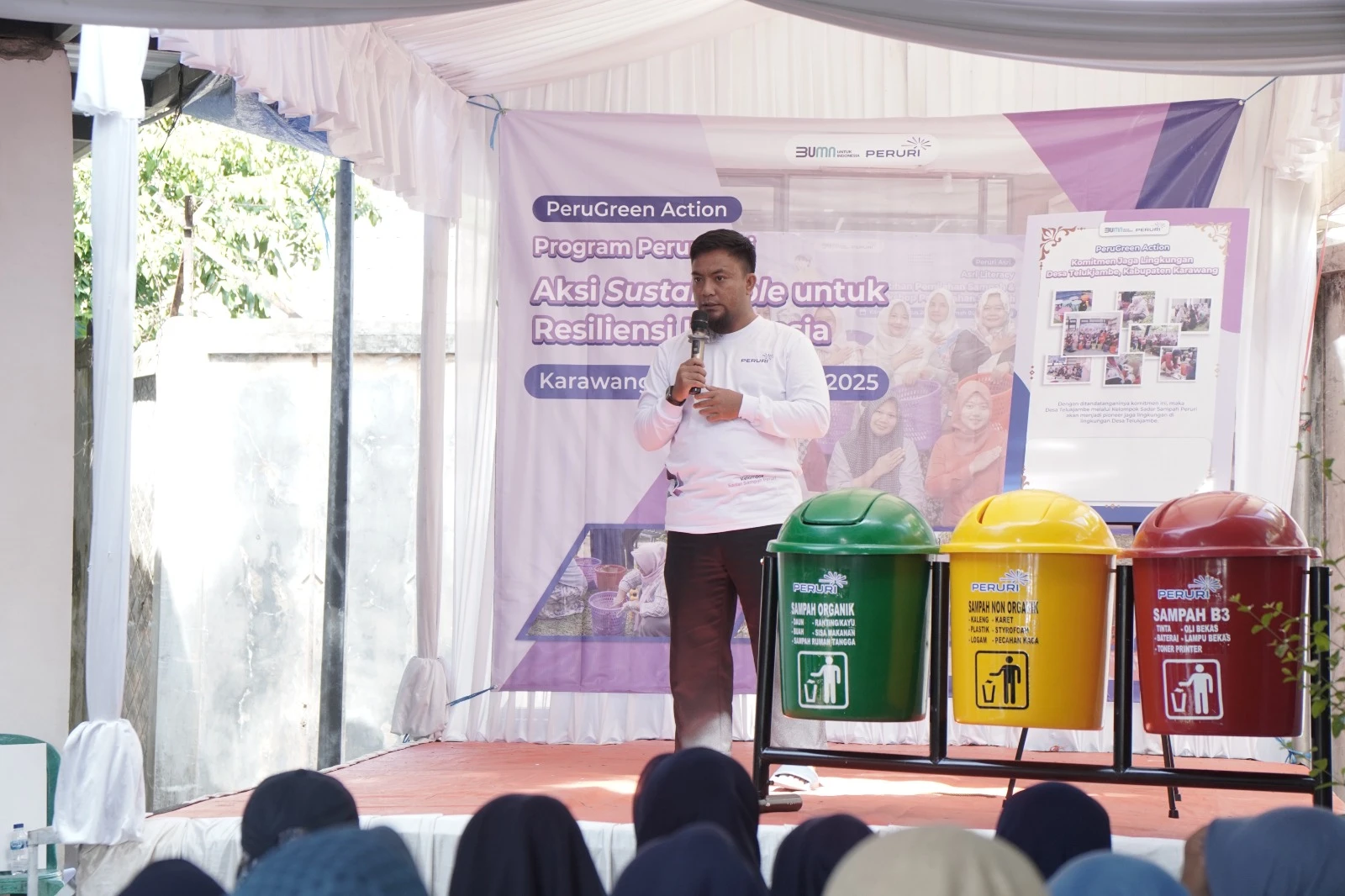 Menjawab kondisi tersebut, PERURI kembali menunjukkan komitmennya terhadap keberlanjutan lingkungan melalui program PERURI Asri bertajuk “Aksi Sustainable untuk Resiliensi Indonesia.” Program ini merupakan inisiatif pemberdayaan masyarakat berbasis lingkungan yang melibatkan kelompok ibu rumah tangga di Kecamatan Telukjambe Timur, Kabupaten Karawang, dan terpusat di Rumah BUMN Karawang pada Minggu (9/11).
