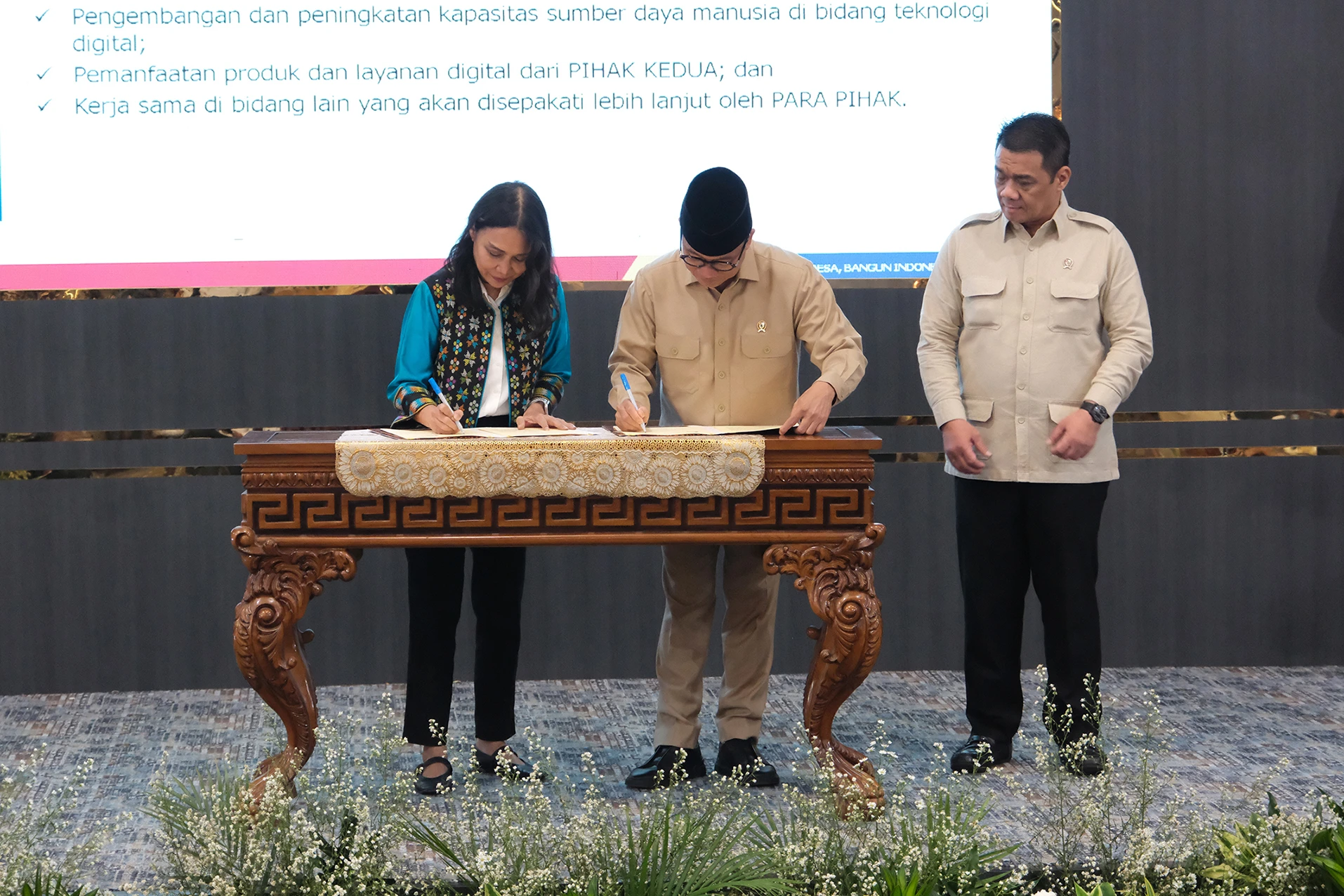 Proses seremonial penandatanganan Nota Kesepahaman dilakukan oleh Direktur Utama PERURI, Dwina Septiani Wijaya bersama Menteri Desa dan Pembangunan Daerah Tertinggal (Mendes PDT), Yandri Susanto. Penandatanganan ini merupakan langkah awal kolaborasi antara PERURI dan Kemendes PDT dalam mendorong transformasi digital di wilayah perdesaan dan daerah tertinggal, sebagai wujud komitmen bersama mendukung pembangunan nasional dan pemerataan ekonomi melalui digitalisasi desa serta pemanfaatan teknologi untuk memperkuat program pembangunan dan pemberdayaan masyarakat desa.