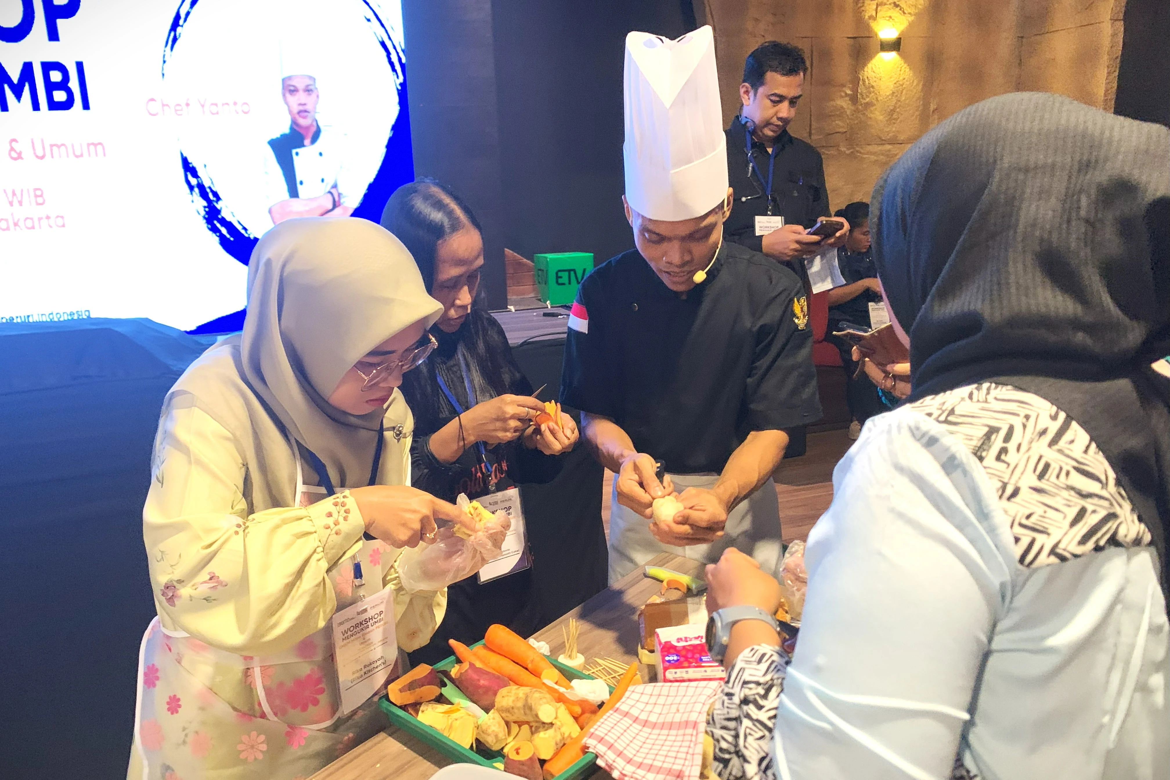 Workshop ini menghadirkan Chef Yanto sebagai narasumber sekaligus instruktur utama. Dengan pengalaman dan keahlian yang dimiliki, Chef Yanto membimbing peserta untuk mengolah dan mengukir umbi-umbian menjadi karya seni yang menarik dan memiliki potensi nilai jual.