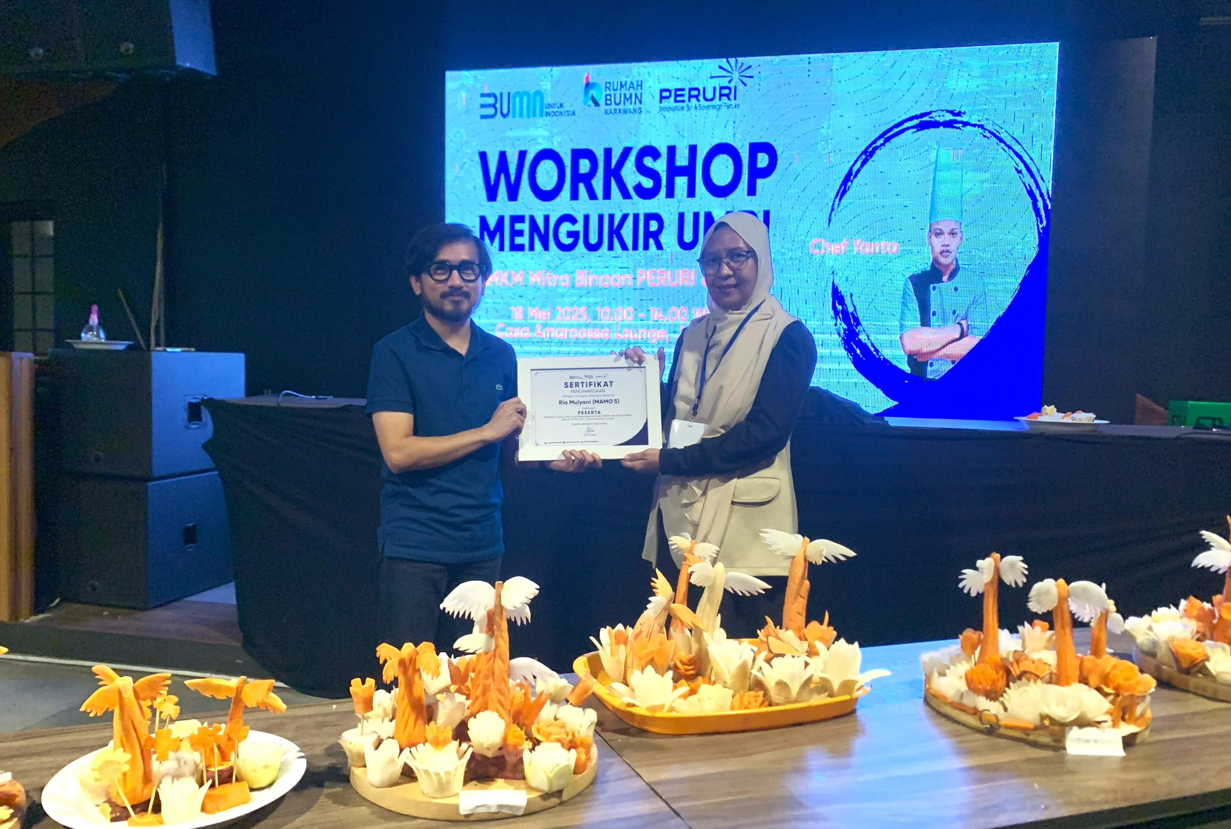 Jakarta – Sebagai bentuk komitmen dalam mendukung pemberdayaan pelaku Usaha Mikro, Kecil, dan Menengah (UMKM), PERURI menyelenggarakan Workshop Mengukir Umbi pada Minggu (18/05) di Casa Amaroossa Lounge, Jakarta Selatan. Kegiatan ini diikuti oleh 30 peserta dari berbagai latar belakang UMKM dan masyarakat umum.