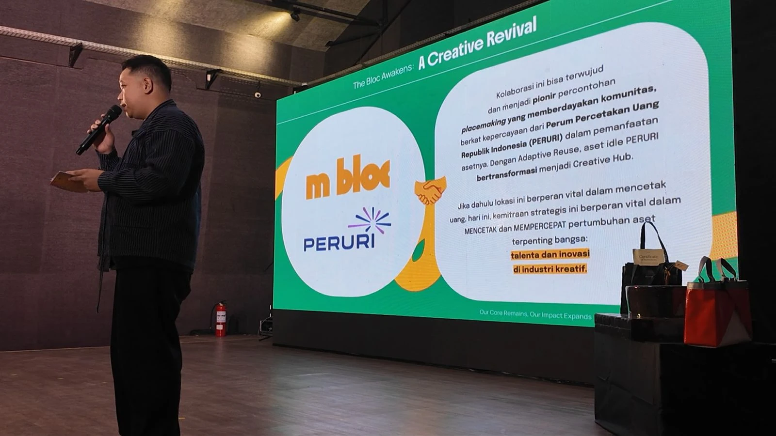 Selama enam tahun terakhir, M Bloc Space telah menjadi simbol kebangkitan ekonomi kreatif urban, menumbuhkan ratusan pelaku UMKM, musisi, seniman, dan kreator lintas disiplin. PERURI berharap M Bloc Space terus menjadi katalis kolaborasi lintas sektor yang menggerakkan ekosistem ekonomi kreatif nasional.